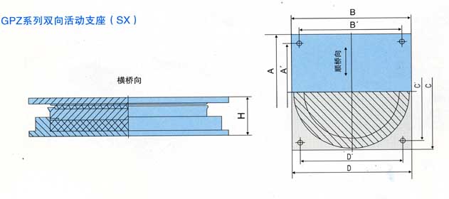 GPZ系列雙向活動支座(SX型)主要尺寸表