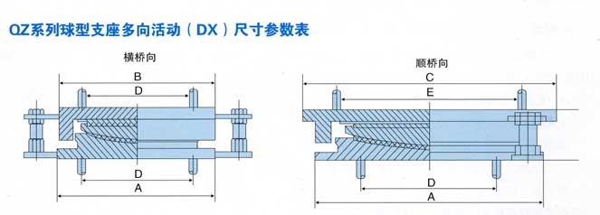 QZ球型盆式支座(DX)多向活動支座主要尺寸表-球形支座重量